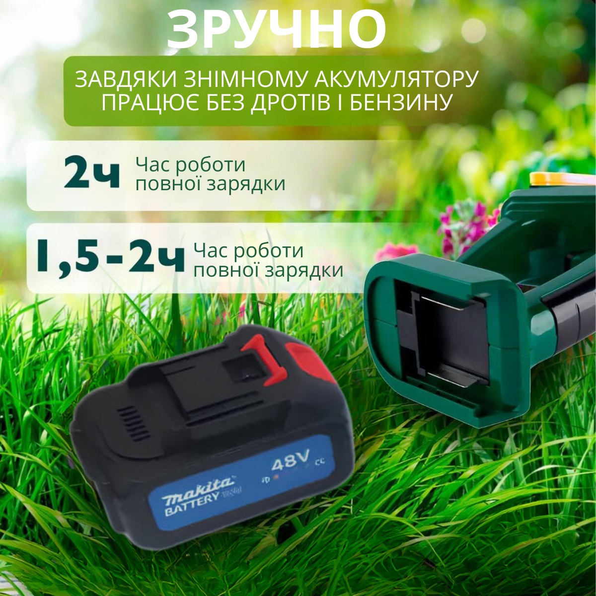 - - Універсальність: підходить для стрижки різних видів рослин — від трави до густих кущів.
